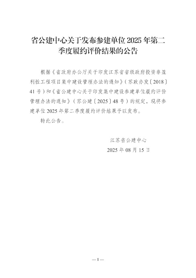 必威手机官网登录关于发布参建单位2025年第二季度履约评价结果的公告